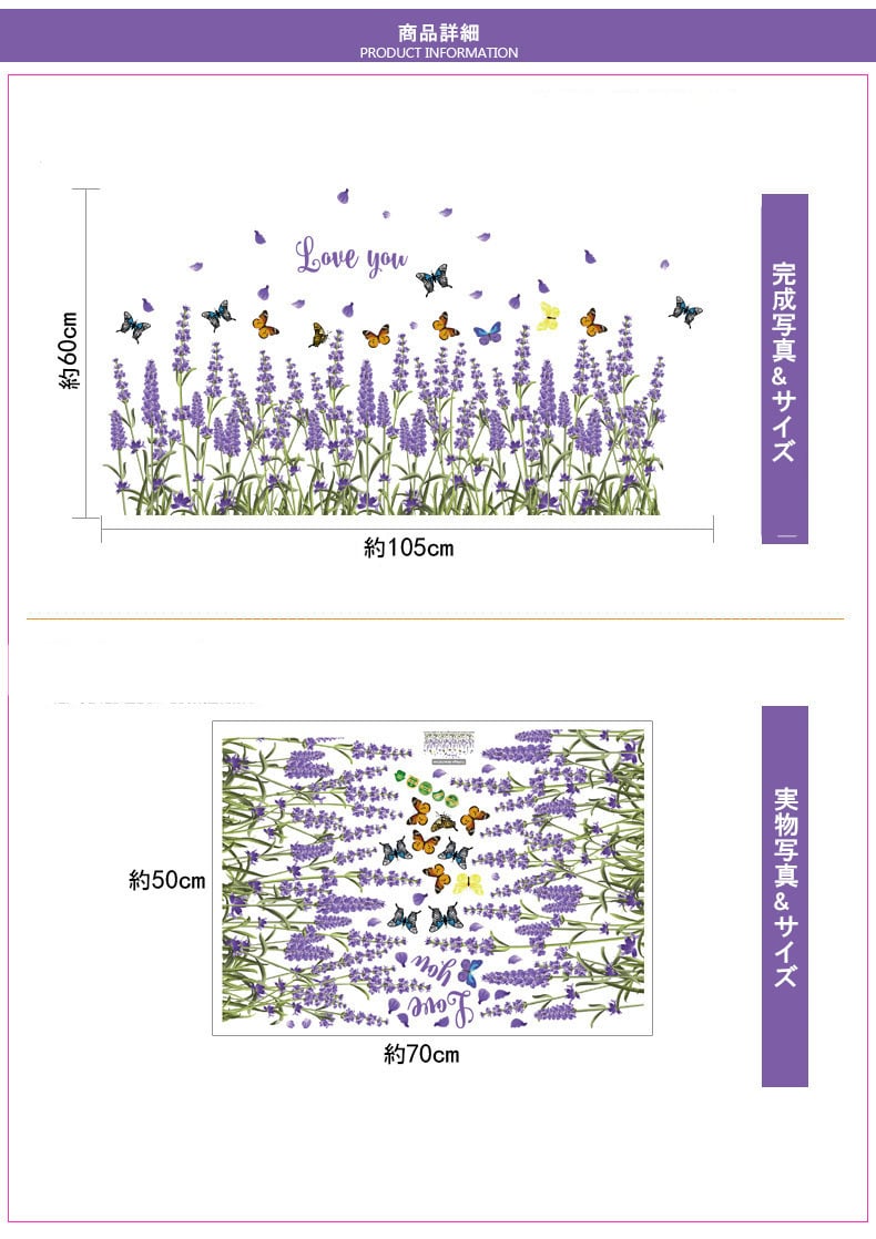 ウォールステッカー 花 ラベンダー 壁紙 シール 賃貸OK はがせる 剥がせる DIY 模様替え インテリア ラヴェンダー 蝶々 ちょうちょ バタフライ 花びら フラワー 宅配便 送料無料 あす楽 母の日